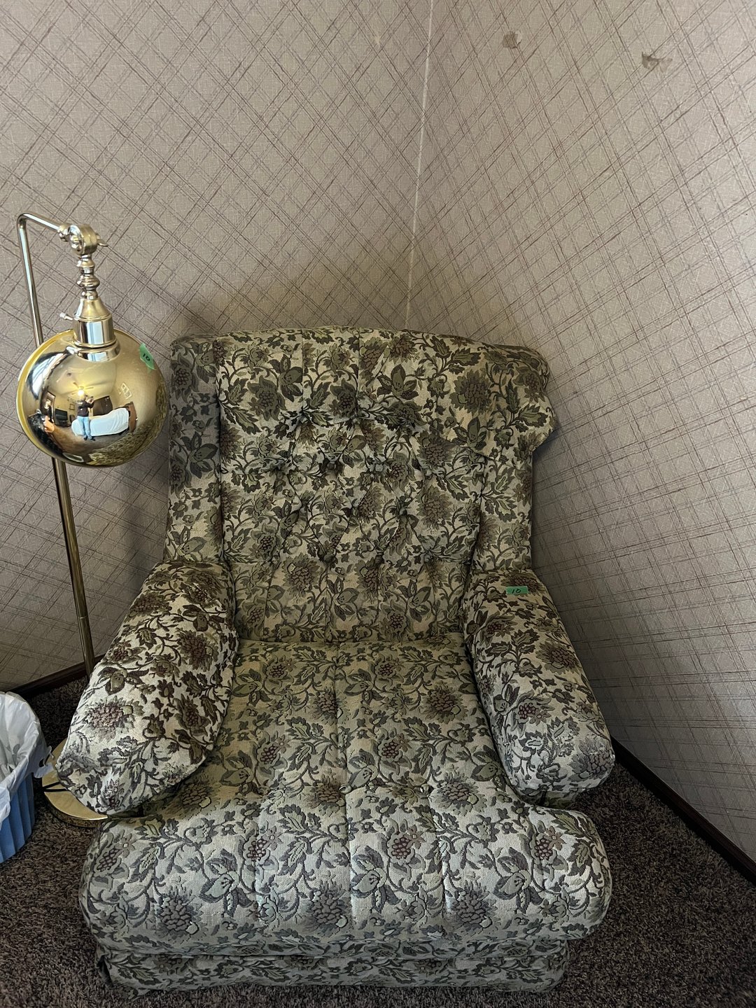 •Green Floral Chair & Floor Lamp (Lot #10)