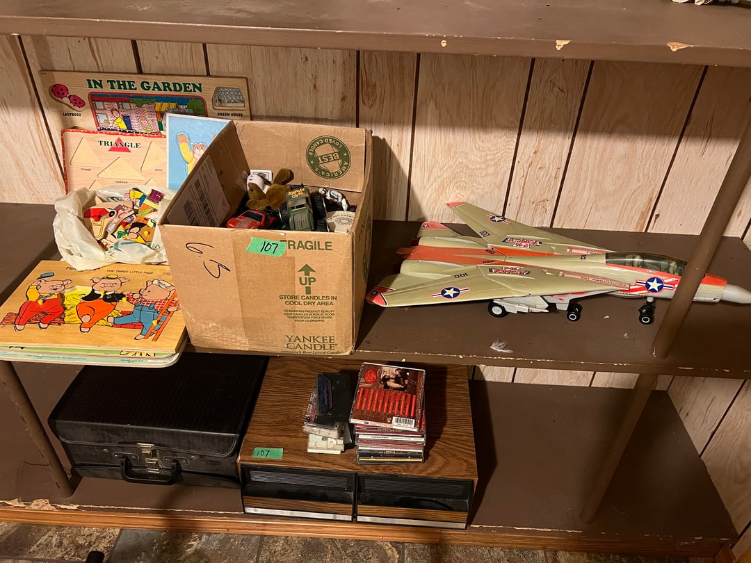 •Airplane, Toys, Cassettes, CD's (Lot #107)