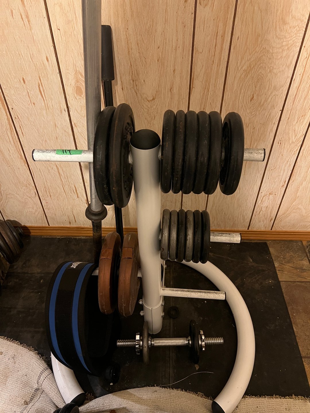 •Weight Plate Tree w/Assortment of Weights, Barbell, (Lot #114)