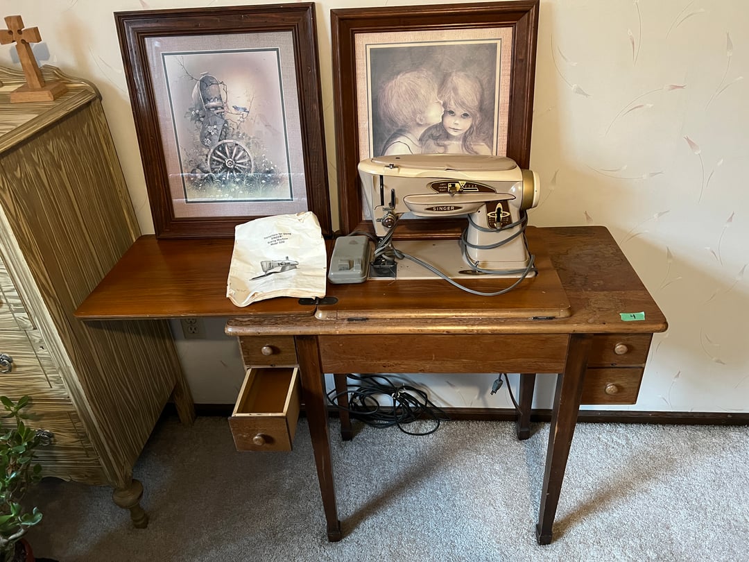 •VTG Singer Sewing Machine & Cabinet, (2) Pictures (Lot #4)