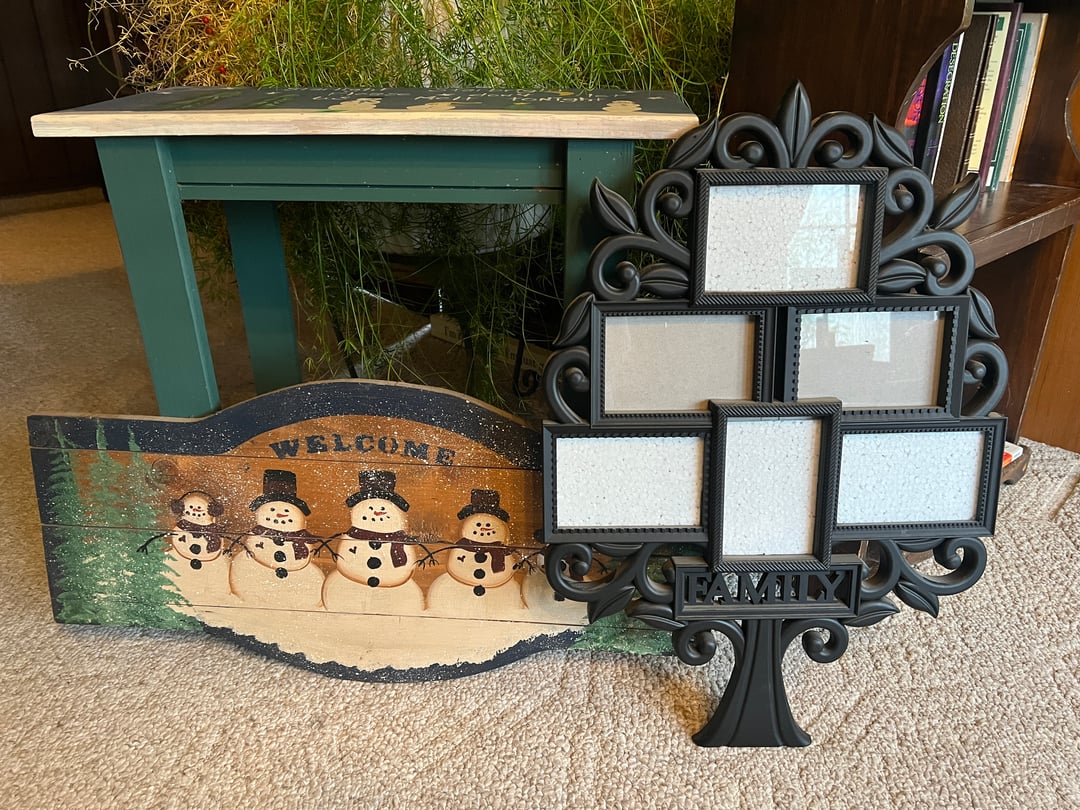 •Snowman Deco Table & Wall Art, Plastic Frame (Lot #46)