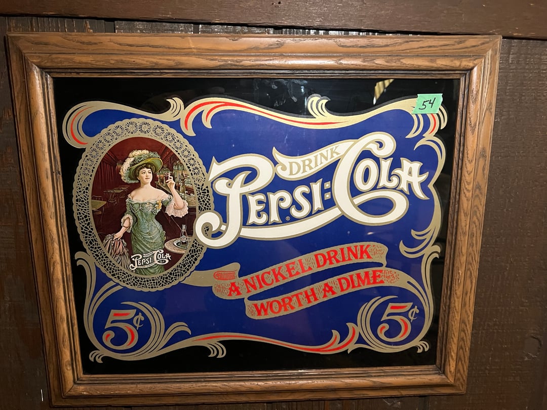 •Pepsi Cola Framed Glass Sign (Lot #54)
