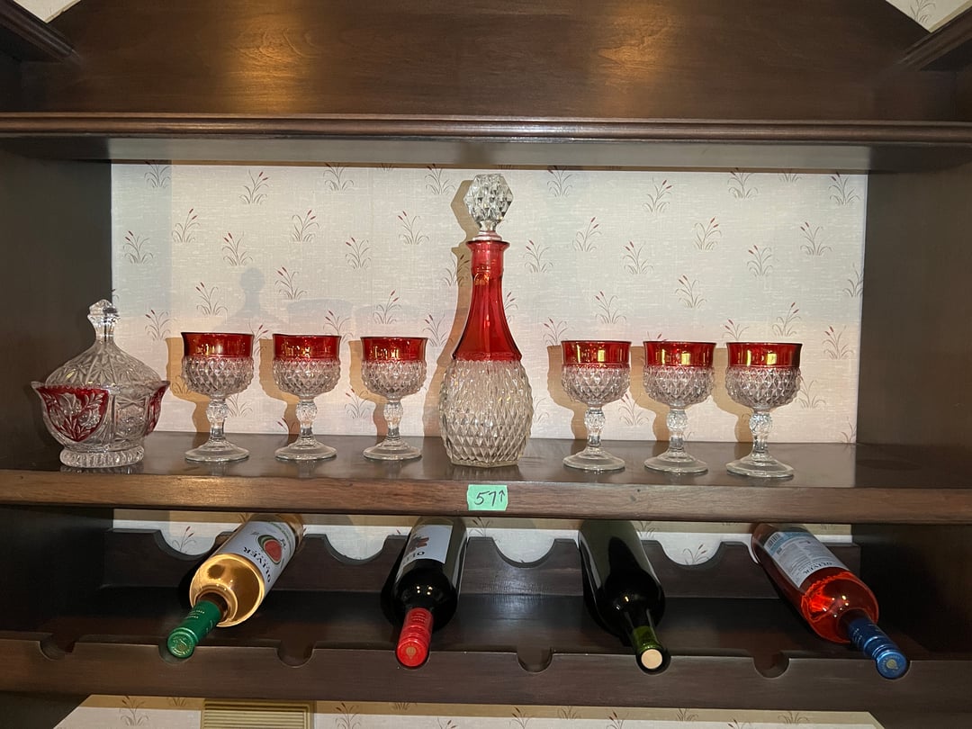 •Ruby Flash Diamond Decanter & 6 Glasses, Candy (Lot #57)