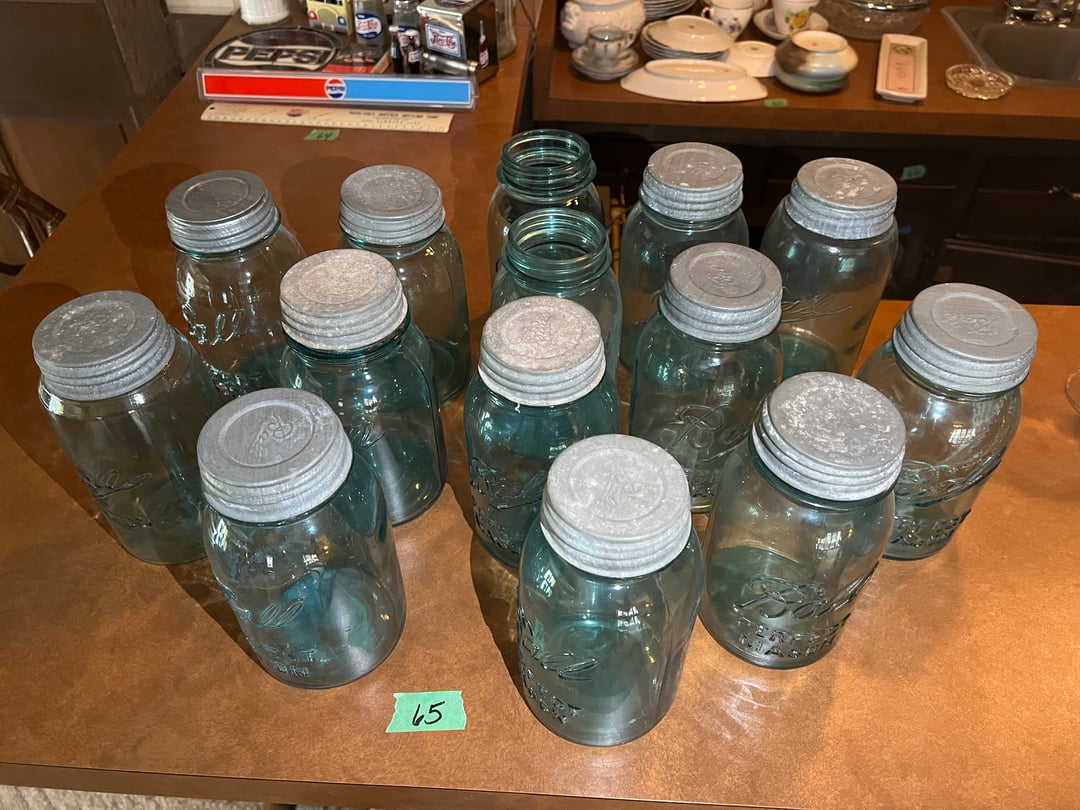 •(14) Blue Glass Ball Canning Jars & Lids (Lot #65)