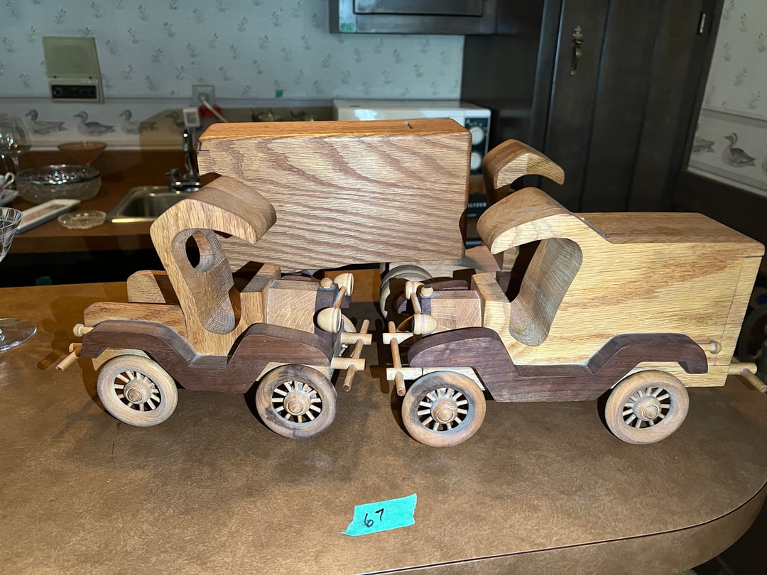 •(3) Handcrafted Wood Trucks - (2) are Banks (Lot #67)